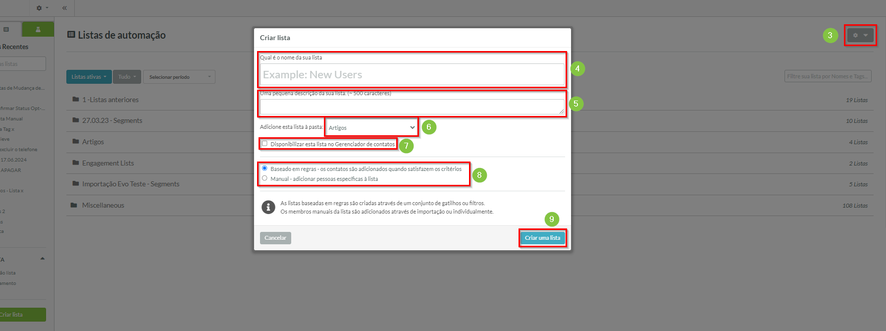 - Clique em Criar Lista.