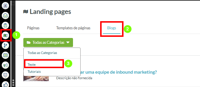 Para editar ou excluir uma categoria de blog, faça o seguinte: