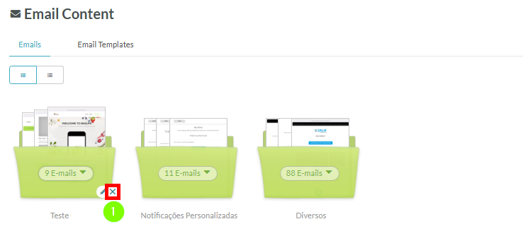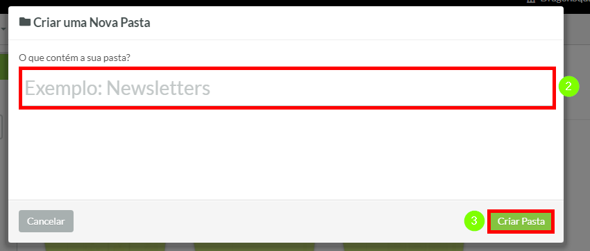 Você pode criar pastas de email. As pastas de email podem conter emails, reduzindo a confusão. Para criar uma pasta de email, comece pela página de Email na barra de ferramentas à esquerda.