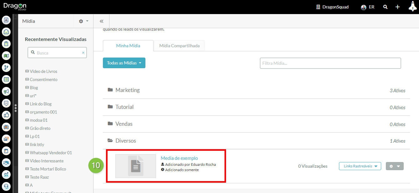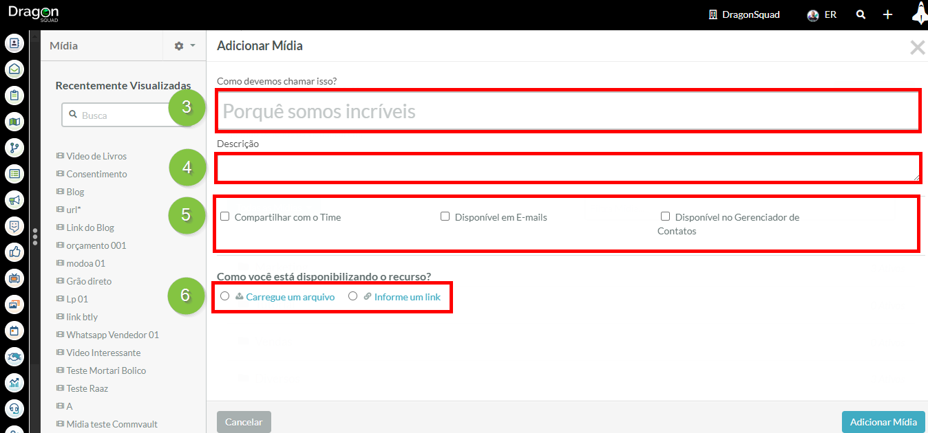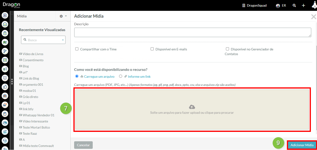 - Clique no nome da imagem carregada no Centro de Mídia.