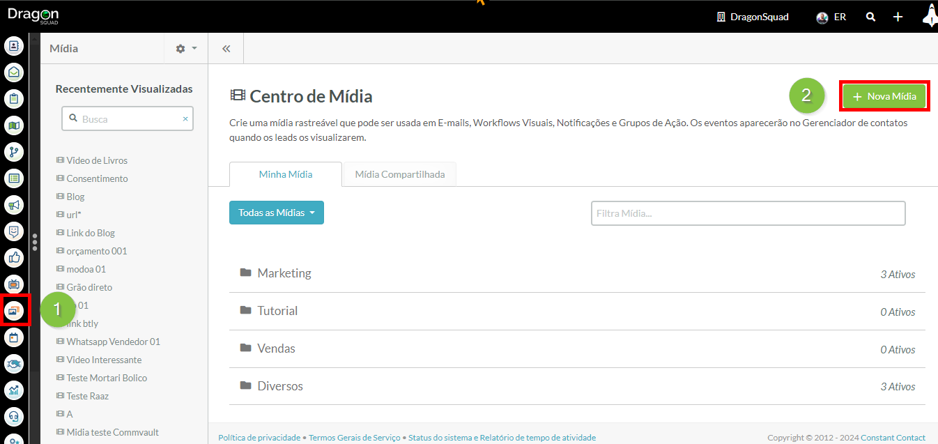 - Clique em Centro de Mídia na barra de ferramentas à esquerda.