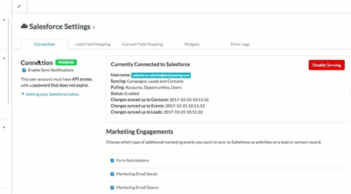 Uma vez que você tenha configurado sua integração com Salesforce no Lead Gen & CRM, pode querer incluir widgets que facilitem a visualização e gestão de seus leads. Além do widget de pontuação de leads, o Lead Gen & CRM oferece um hiperlink de lead, permitindo que você navegue rapidamente entre leads no Lead Gen & CRM e Salesforce.