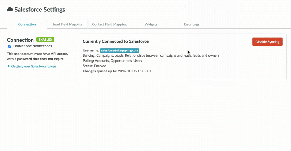 Antes de criar widgets, você deve conectar sua conta do Salesforce com sua conta do Lead Gen & CRM. Além disso, você deve ser um administrador em ambas as contas, Salesforce e Lead Gen & CRM.