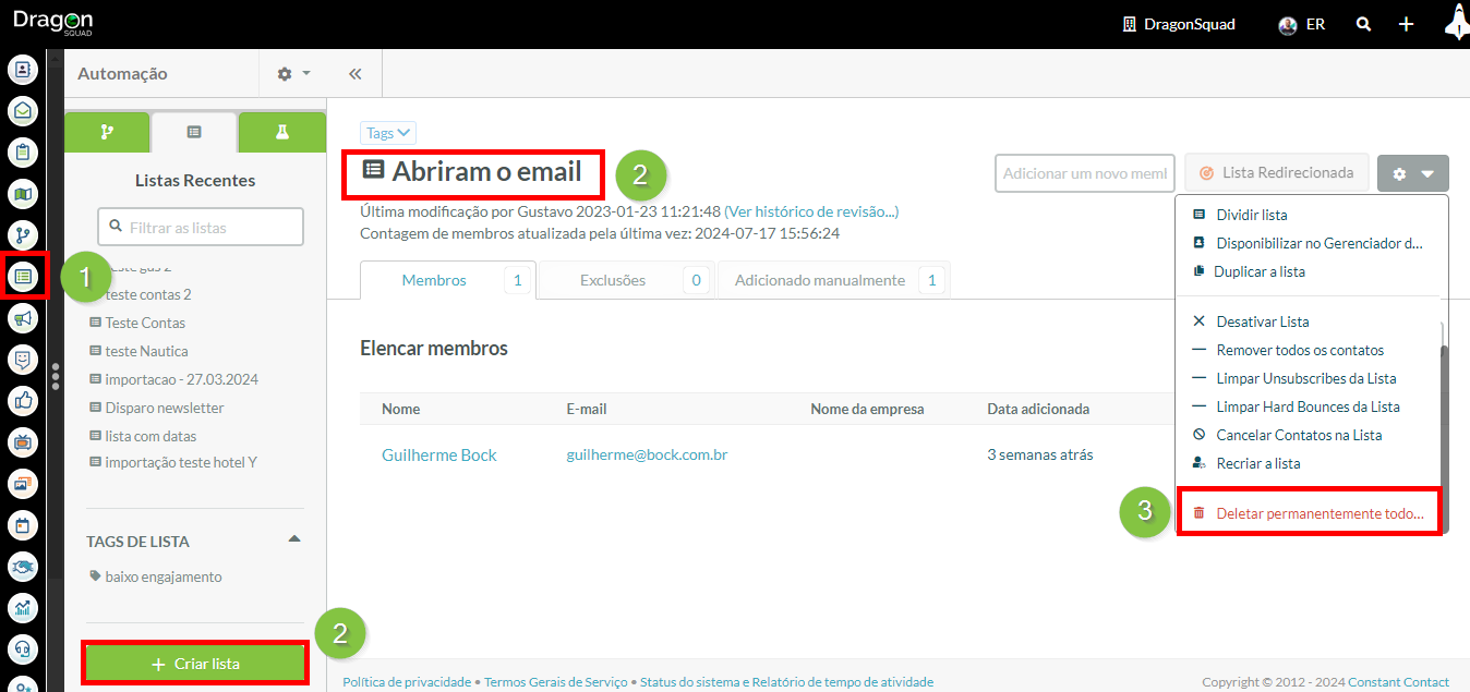 Excluindo Leads do Gerenciador de Contatos e Listas