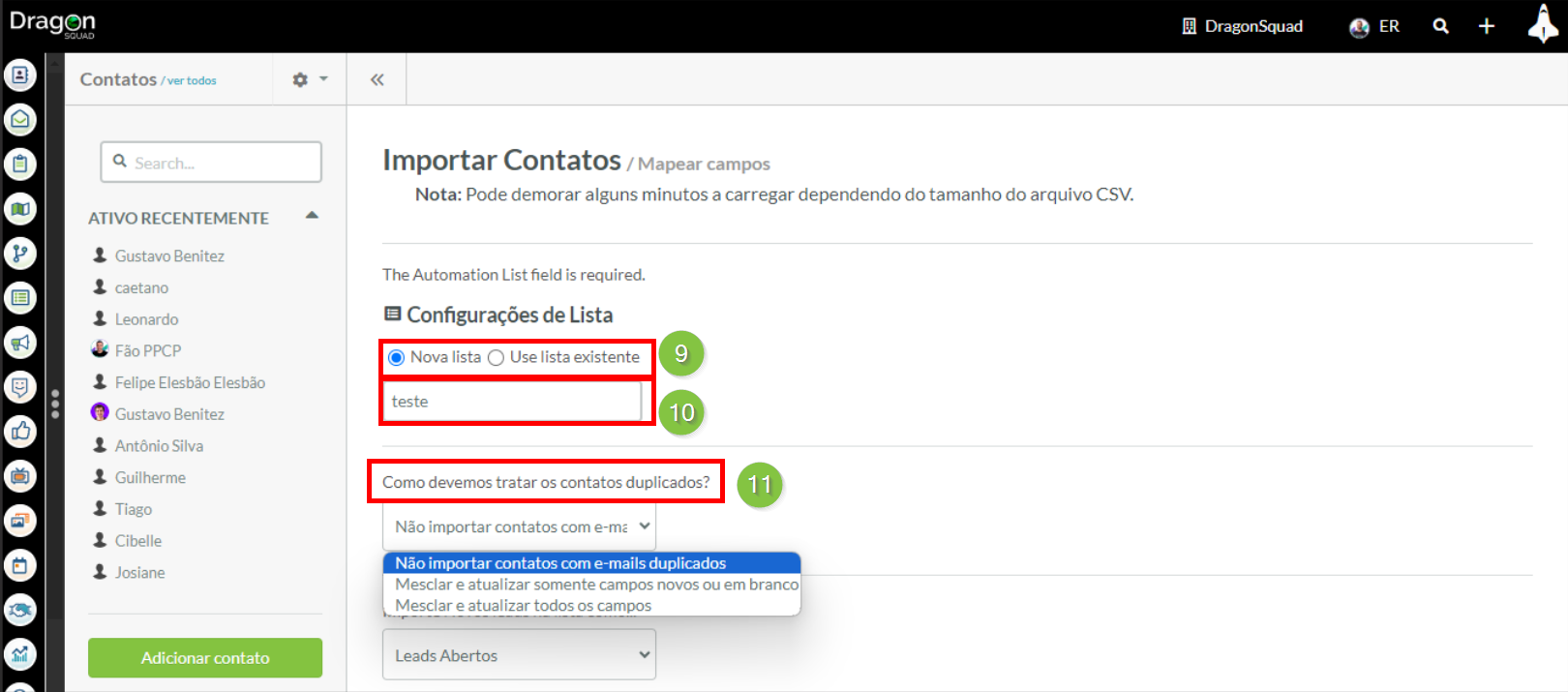 Importando e Mapeando Contatos de Arquivos .CSV