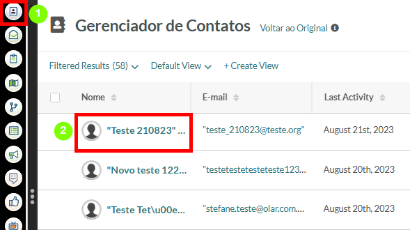 - Clique em Contatos na barra lateral esquerda.