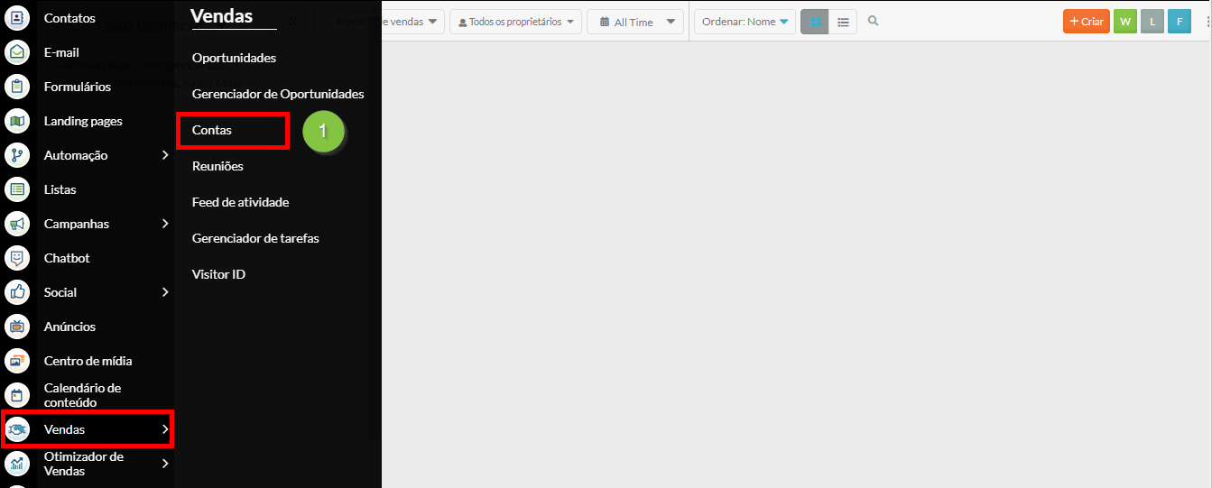 - Clique em Vendas > Contas na barra lateral esquerda.