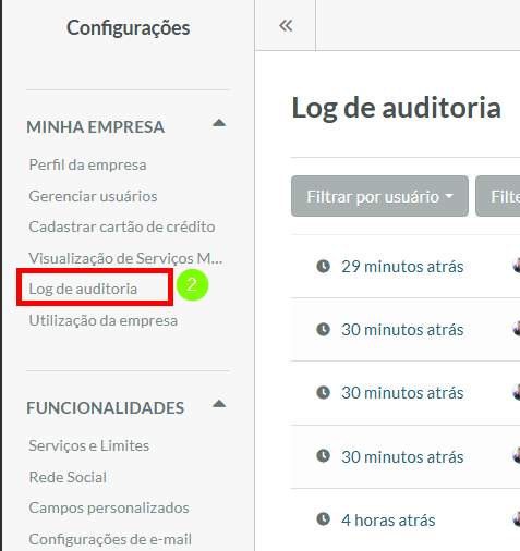 - Clique em Registro de Auditoria, localizado sob Minha Empresa no painel esquerdo.