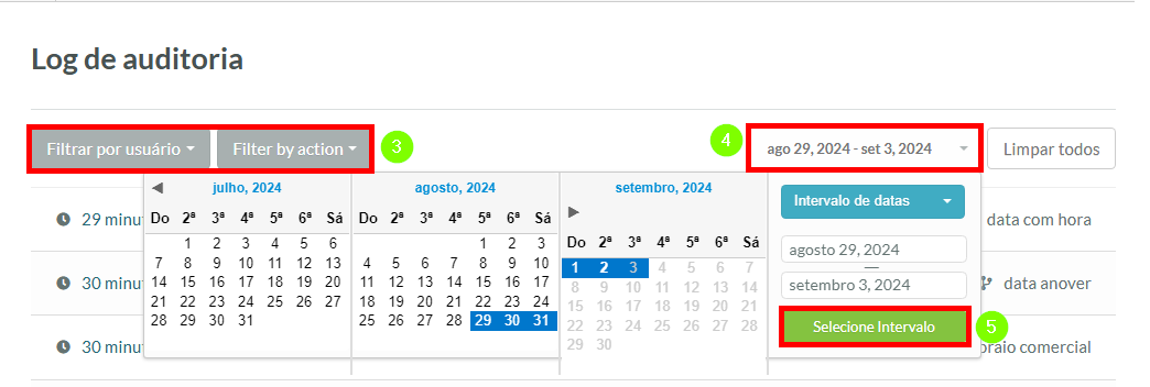 Para visualizar registros de auditoria e filtrar dados, faça o seguinte:
