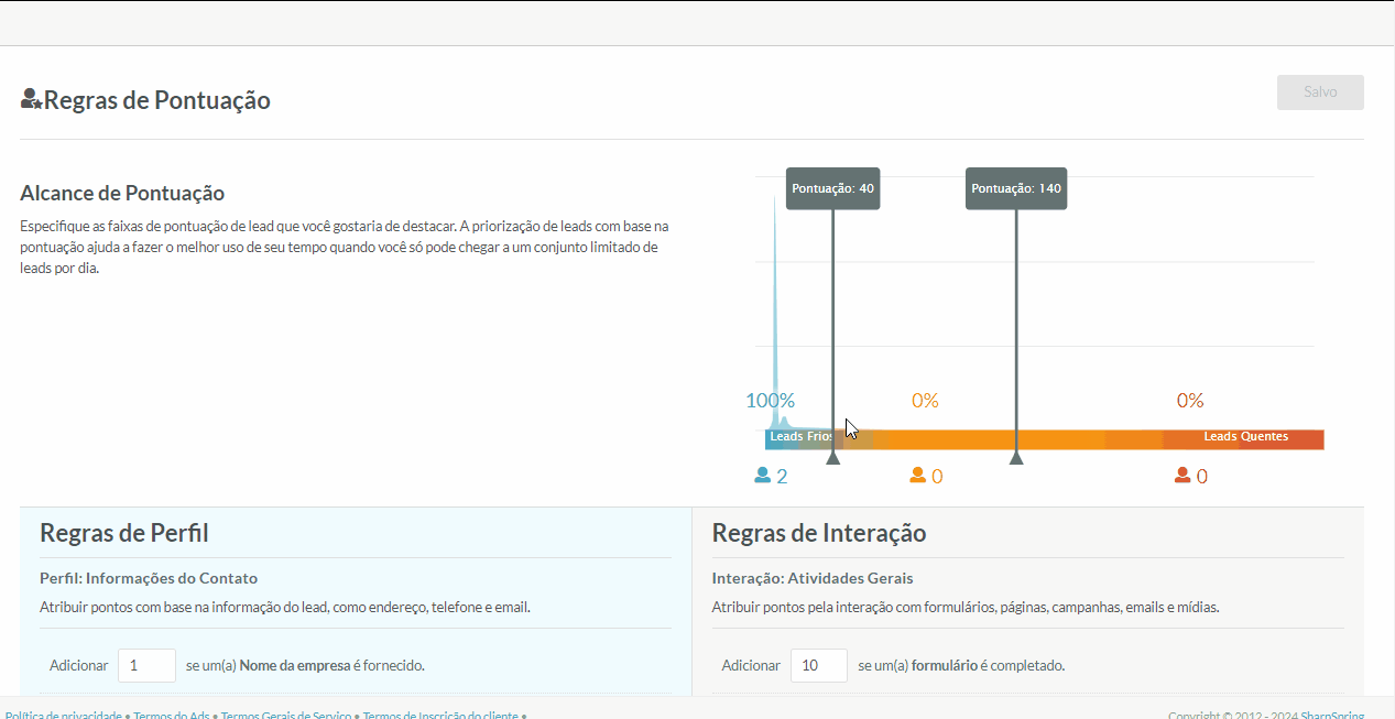 | Informações de Contato | Configure pontuações de leads com base nas informações pessoais de um contato. |